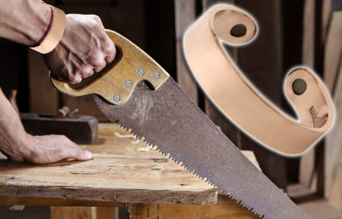 a 15 mm wide and 3 mm thick strip (long according to your measurements) of solid copper, the sides and ends ground round, then both sides finely ground and polished. Two 4×2 mm recesses are milled on the inside to accommodate the two powerful neodymium magnets later, then pressed into the oval shape. The two neodymium magnets were inserted and sealed with synthetic resin. The magnetic copper bracelet is polished again, packed, placed in a bubble envelope, address label with the tracking code on it … and off to the post office … and then the bracelet will soon be with you.